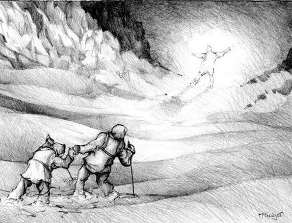 Lack of oxygen may have played a role, but at one point he was so convinced of the presence of this figure that Smythe even took out his rations and broke it in half, trying to give it to the mysterious figure who was supporting him.