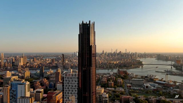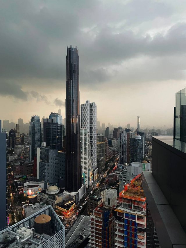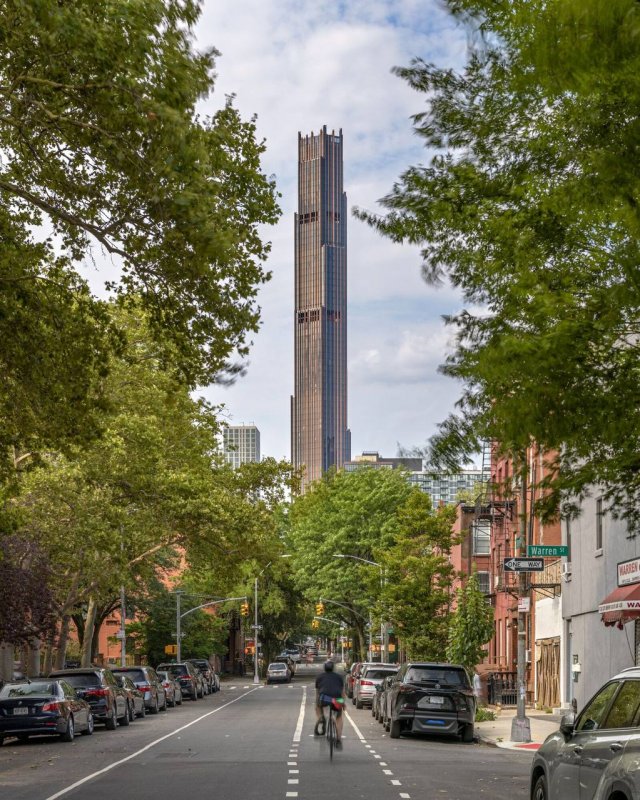 It is reported to be the first supertoll (i.e. 300+ meters high) in Brooklyn. It has 93 floors, the tallest skyscraper outside of Manhattan. The tower turned out to be stately, the facades are made of bronze, stone, glass and steel. You can buy an apartment there for $950 thousand dollars - this is a 53m2 studio on the 54th floor.