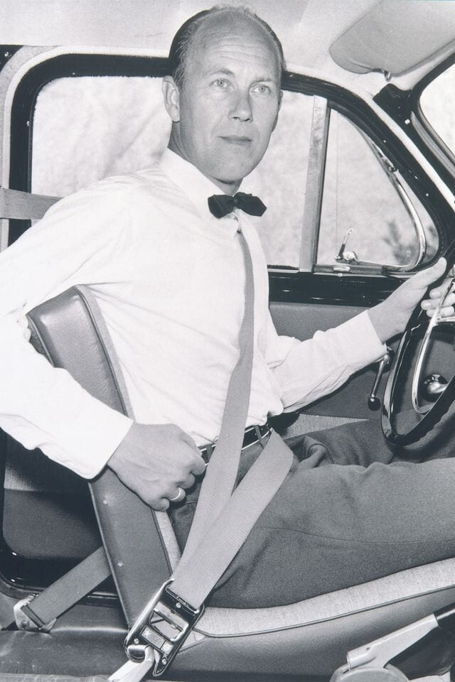 After moving from an aircraft company to an automotive company, Nils Bohlin became a leading safety engineer. To increase the likelihood of saving a person's life in car accidents, Nils invented a belt that secures both the upper and lower parts of the body.