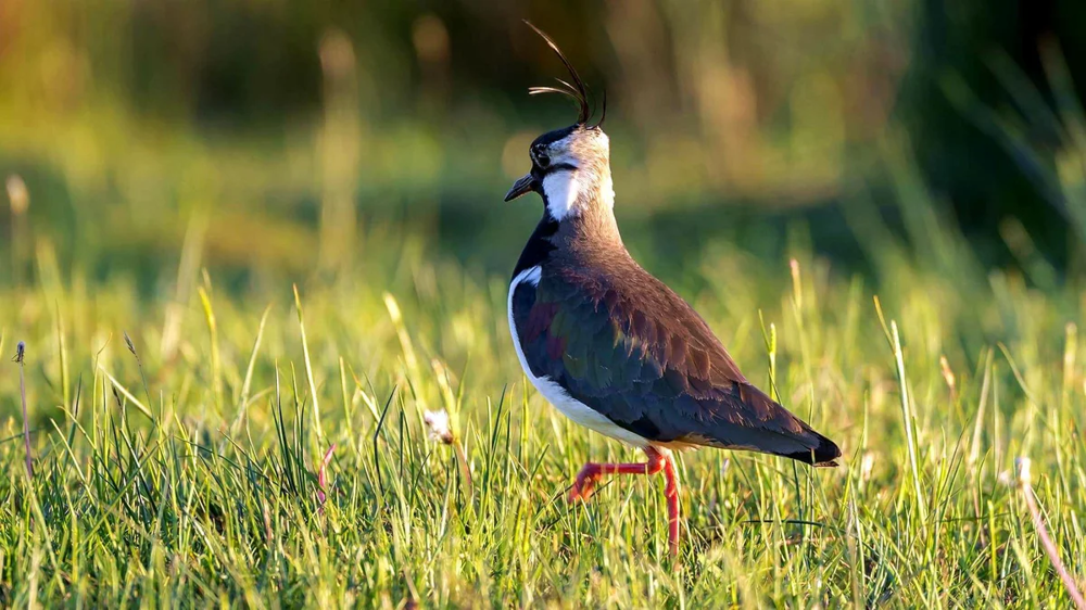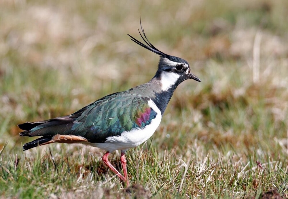 This is a bird better known as the lapwing. The bird is really miniature - its body length is 30 cm, and it weighs only 200 grams. The back and breast of the pigtail are greenish, with a purple sheen. On the back of her head she has a crest of several narrow feathers, her legs are pink, and her beak is dark.