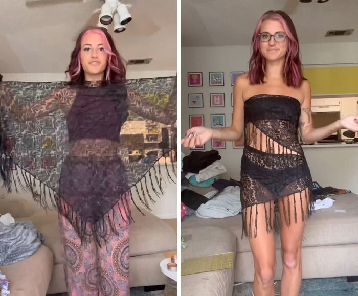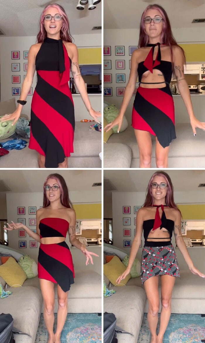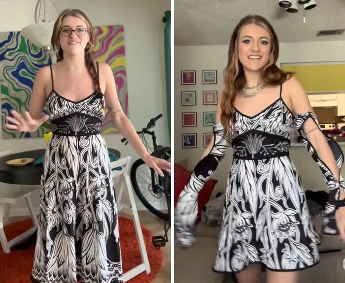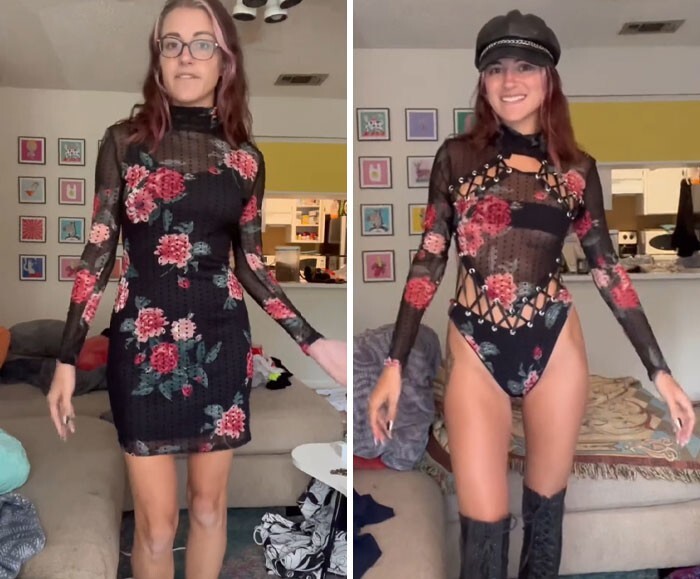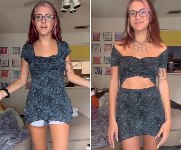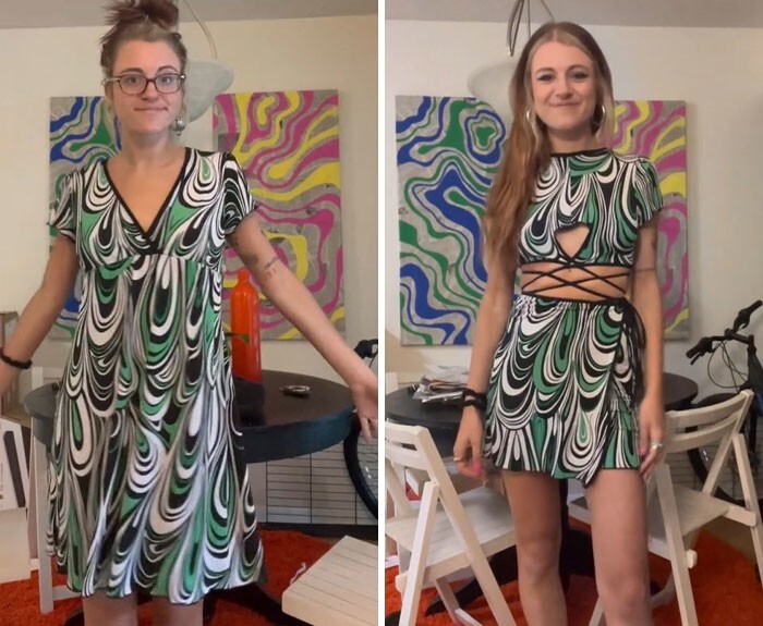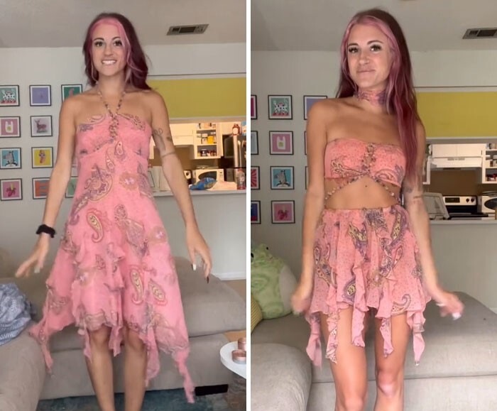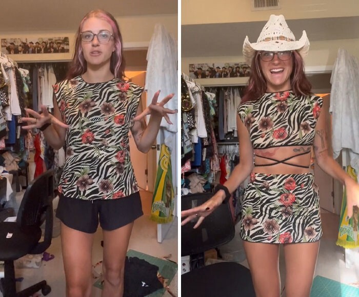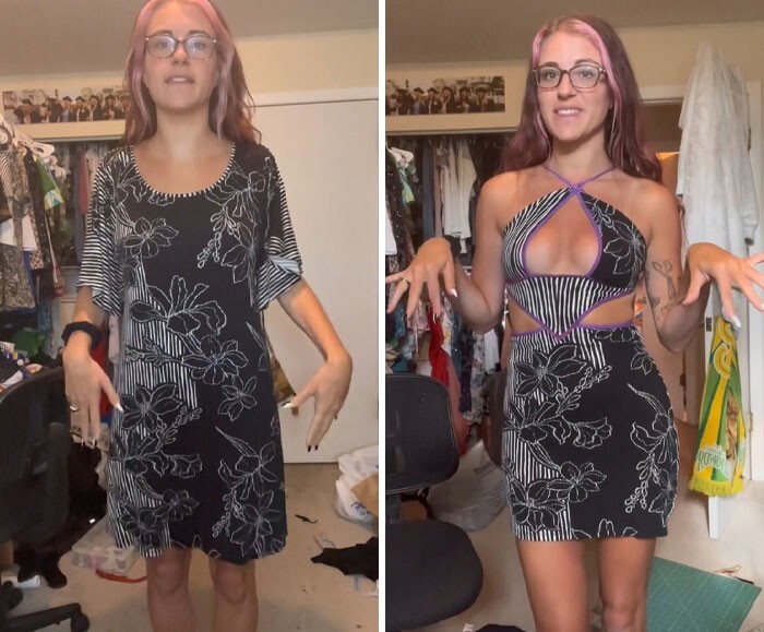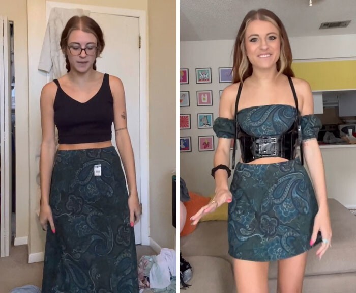 Thrift store fans can spend hours rummaging around to find interesting second-hand items. They take their hobby seriously and simply love to save money and have fun at the same time. And those who know how to sew use their skills to remake things. That's exactly what Brooke Karasak does, creating unique outfits that make her stand out from the crowd!