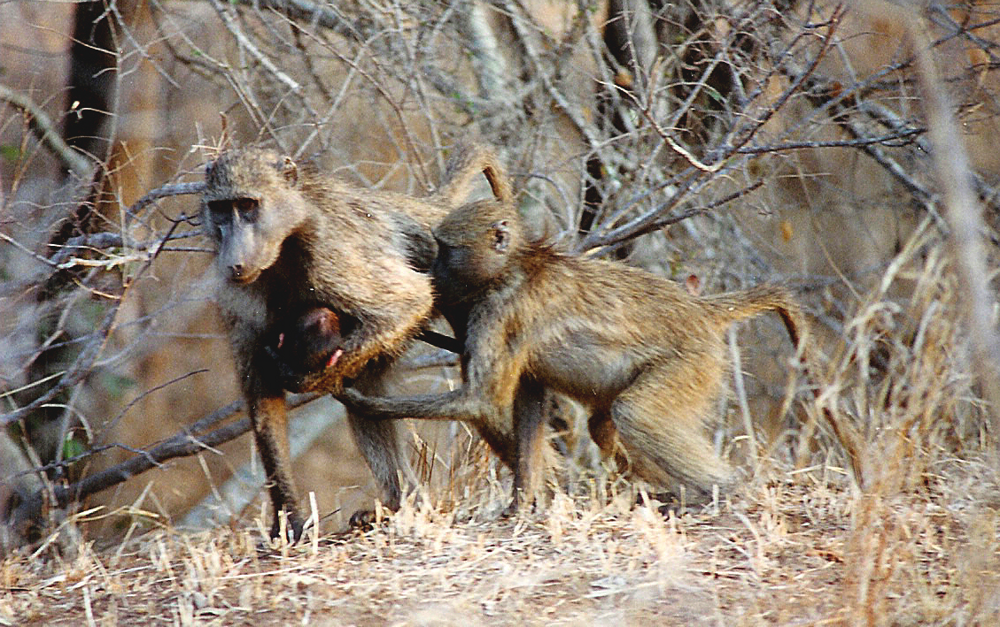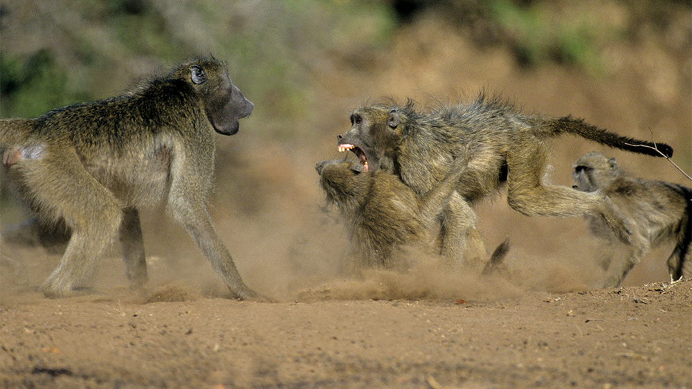 Meet the bear baboons. These primates are doing their best to create primitive families and live happily ever after.