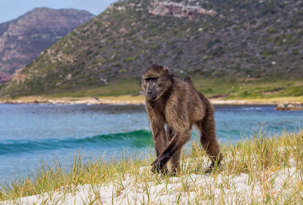 The bear baboon, cape baboon, or chacma, is one of the six living species of baboons. Chacma are considered one of the largest representatives of the baboon genus and the entire monkey family as a whole. Adult gray-brown male baboons grow up to 115 centimeters in length and weigh up to 45 kilograms. Enough to compete with large mandrills and proboscis whales.