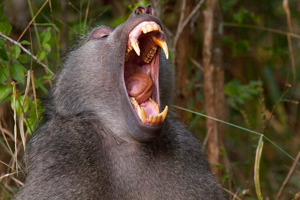 Our heroes differ from other types of baboons by their long black muzzle with a slightly downward curved profile and huge fangs. In young alphas in their prime, their length can reach 4 centimeters, almost like that of a wolf! This is where the few external differences end, and the most interesting thing begins - the food habits of the Chakmas and the complex structure of their society.