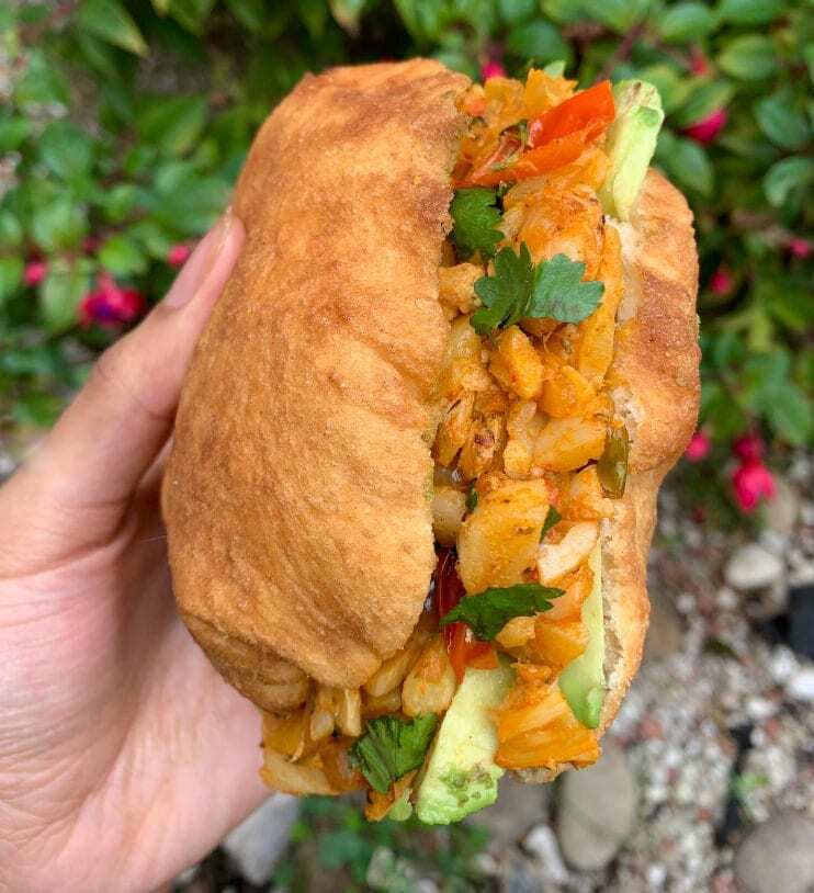Guyana loves to have Bake & saltfish for breakfast - a crispy bun with fish and vegetables. Tasty and nutritious.