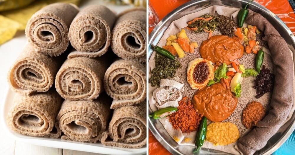 Ethiopians love injera - large, doughy flatbreads made from the African cereal teff. They are served with various additives and fillings.
