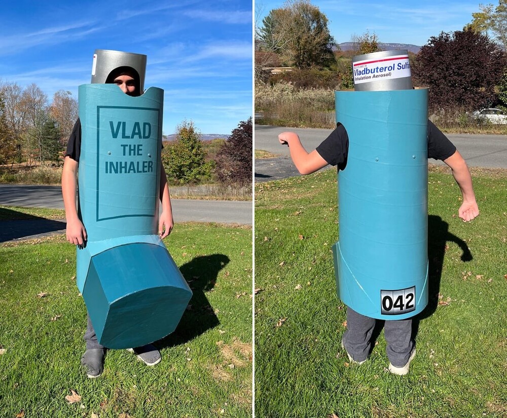 1. “My son’s name is Vlad, and he has asthma. For Halloween he made a “Vlad the inhaler” costume.”