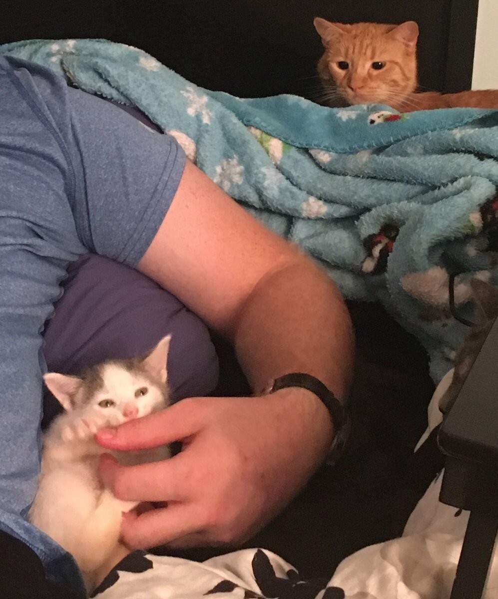 In the case of cats, envy cannot be hidden. But the good news is that the usual kind words, stroking or treats help to cope with it.