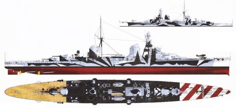 Camouflage scheme for the heavy cruiser Trento at the end of 1941