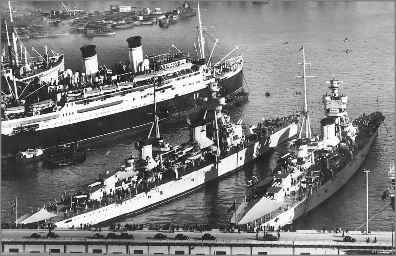 Heavy cruisers Trento and Trieste in Genoa shortly before the outbreak of World War II, May 1938
