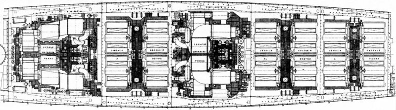 For the first time in the Italian fleet, a very powerful and modern four-shaft power plant with a total power of 150,000 hp was installed on cruisers. For comparison, the battleships of the Conte di Cavour class, which had twice the displacement, had a power plant of 31,500 hp.