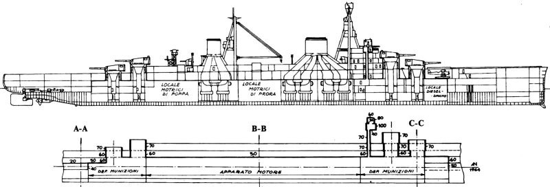 When developing armor protection for Trento-class cruisers, the main requirement was the ability to withstand guns up to 155 mm caliber - the main armament of French and British light cruisers.
