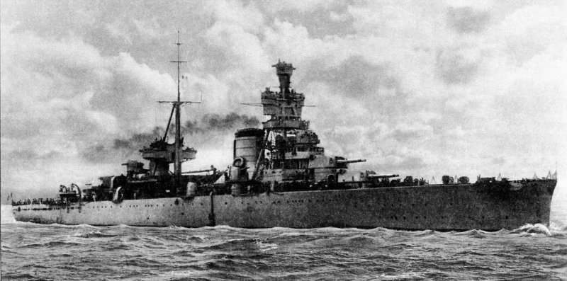 On November 27, 1940, Trento, together with the ships of the 1st and 2nd squadrons, took part in the battle off Cape Teulada. Due to a mistake by the squadron commander, Admiral Campioni, the heavy cruisers in the vanguard were forced to engage in battle with the British light cruisers, which were joined after some time by the battleship Ramilies and the battlecruiser Rhinaun. Only thanks to their superior speed did the Italian ships leave the battle and manage to escape from the enemy.