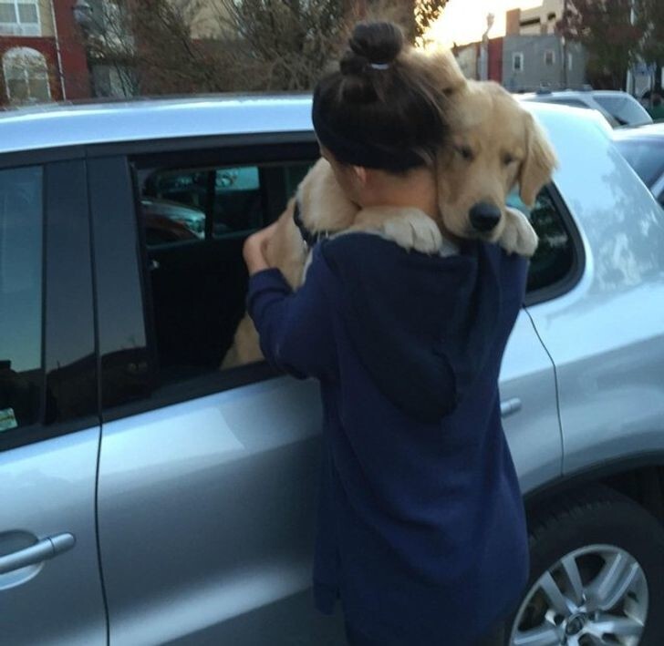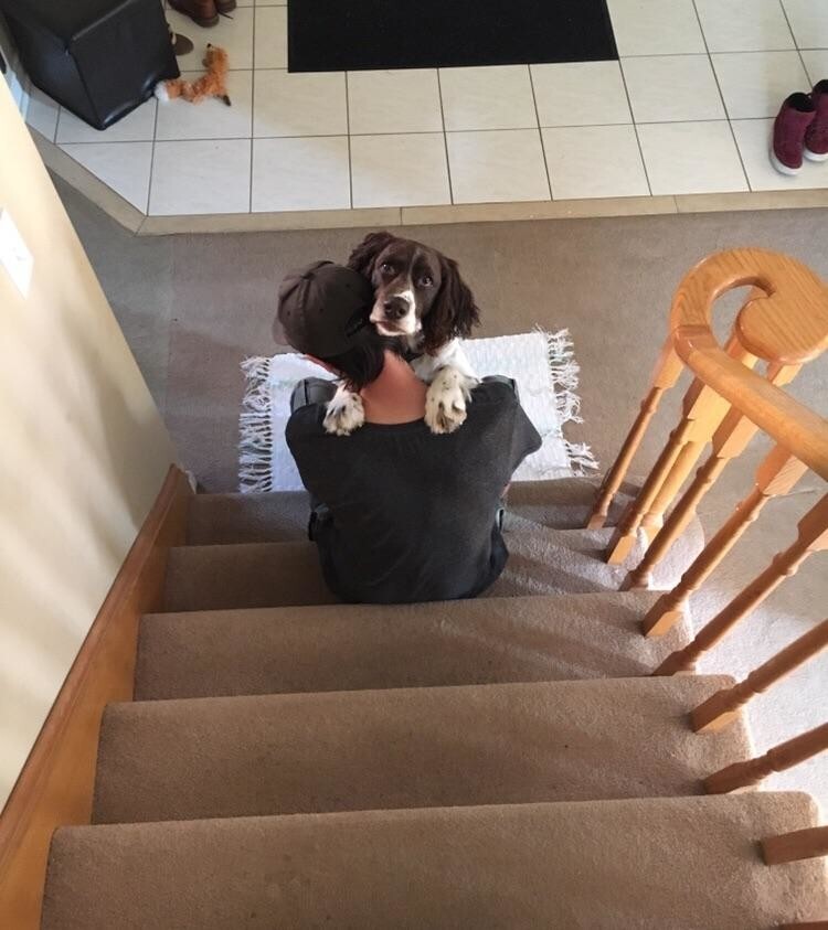 8. My boyfriend and his dog hug each other every morning.