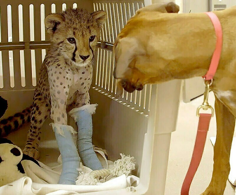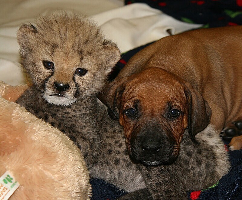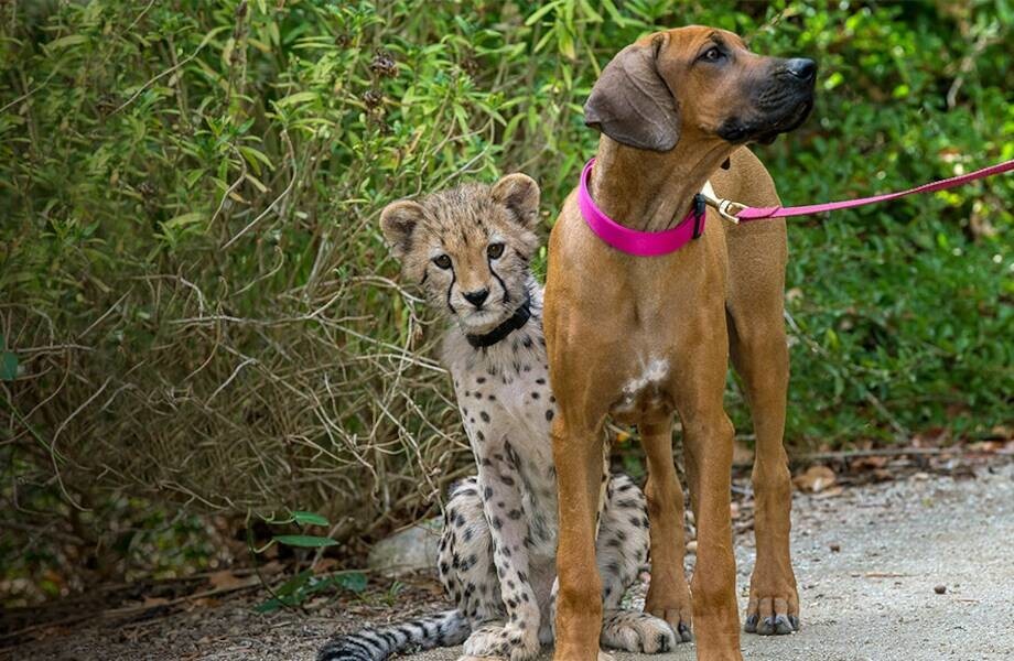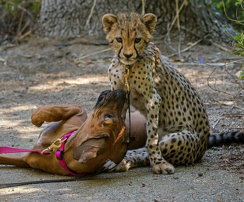 Cheetahs usually have 5-6 kittens in a litter. But if a cheetah gives birth to only one kitten, the baby usually faces a sad fate. The mother leaves the cub because she is sure that it will not survive in the wild. This is exactly what happened at the San Diego Zoo: a young female cheetah abandoned her only cub. In order to somehow help the kitten survive, the zoo administration decided to introduce the baby to the puppy. Thus began a unique friendship between completely different animals.