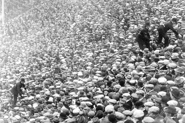 FA Cup final Cardiff City - Apcenal. The police make their way over the heads of the fans to their official places. April 23, 1927