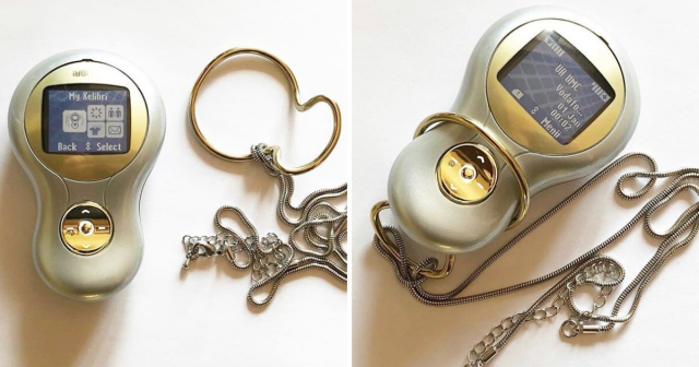 Stylish phone made in the form of a pendant. Can be ringed and worn as decoration.