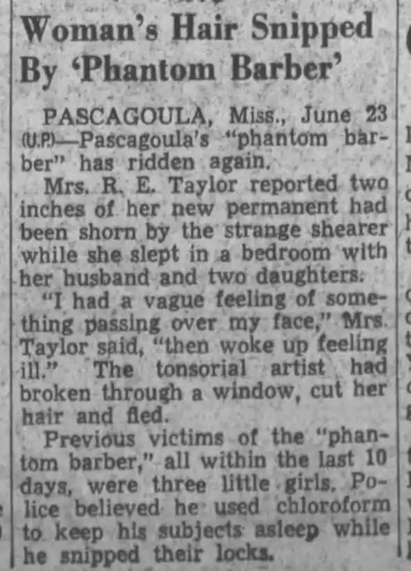 After covering the events in the press, it became known that the attacks in Pascagoula were not the first for a long time and that the “ghost” allegedly climbed into other houses in the city and suburbs. There have been cases where victims woke up before getting a haircut, but more often they discovered a new haircut only in the morning. They did not understand that he was a serial maniac and did not contact the police, thinking that it was just someone's stupid joke.