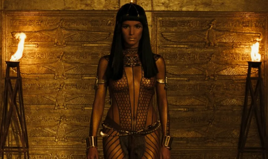 11. Patricia Velasquez, who played Anxunamun, had to spend 4 hours every day in the dressing room. This is exactly how much time it took to apply gold paint to her body, create a hairstyle, do body painting, etc. Yes, everything we see on Anxunamun's body (except for the loincloth) is body art, not clothing items.