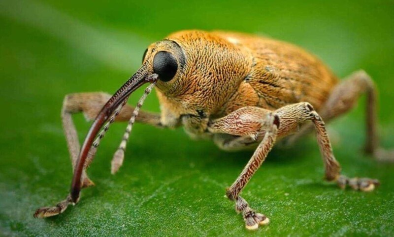 Upon closer inspection, the weevil is the cutest cartoon creature, which received its name due to such an outstanding organ. Despite their cuteness, weevils are pests and feed on almost all parts of plants, destroying crops.