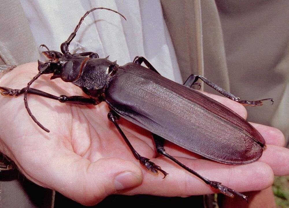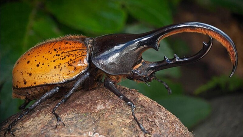 Another representative of the giants is the Hercules beetle. The males of this species, which lives in tropical forests, in addition to a large body, can boast of having a long horn and incredible strength: the beetles are capable of lifting a weight hundreds of times greater than their own.