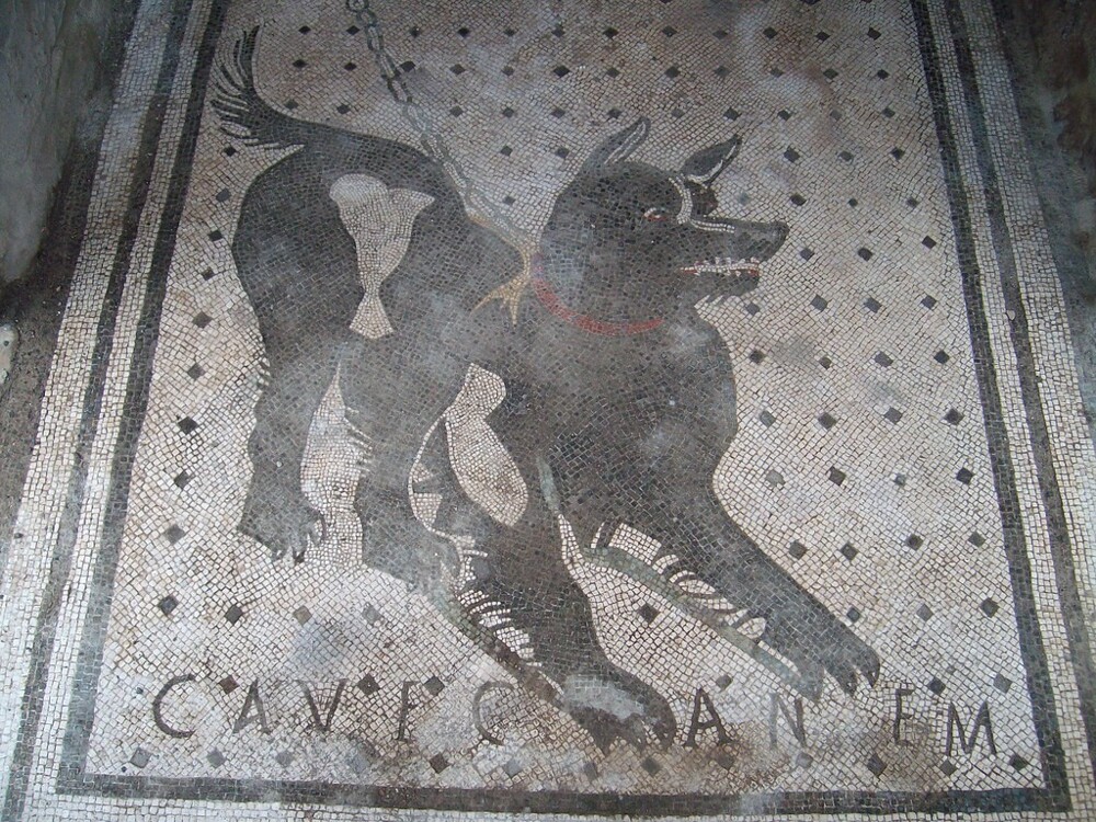 The most famous floor fresco with the inscription Cave canem (“Beware of the dog”).