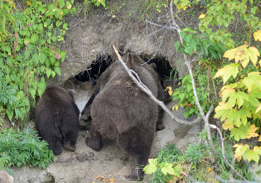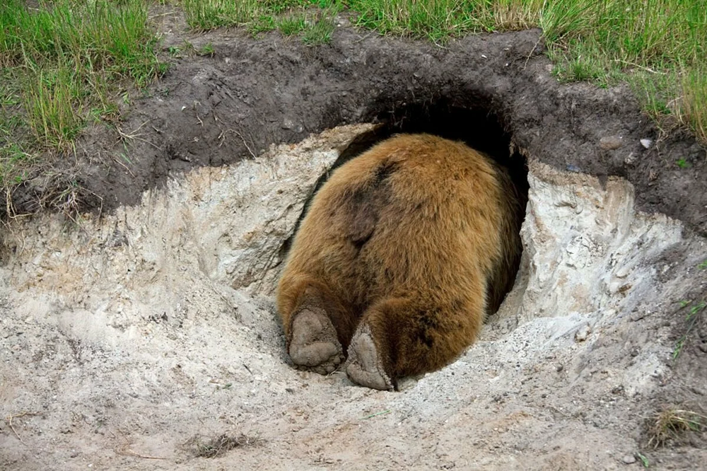 But unpaved dens are the pinnacle of bear art. Experienced bears most often resort to them, because building it is not so easy. The main difficulty is that the passage of such a den should be as minimal as possible, so that cold air has less chance of entering the house. But there should be mansions inside so that you can toss and turn to your heart’s content in your sleep.