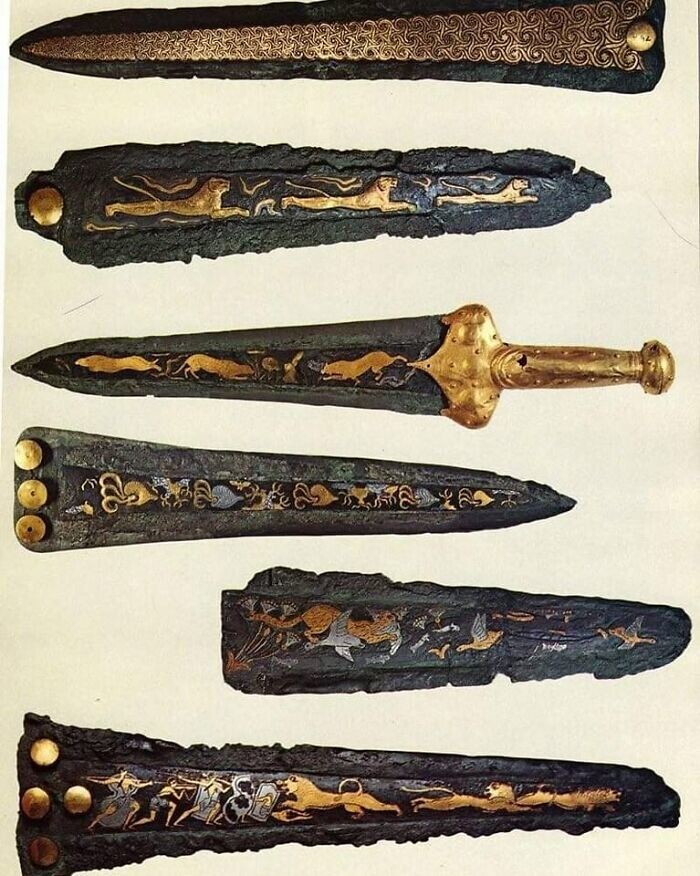 25. Mycenaean daggers made of silver and gold. 1550-1500 BC.