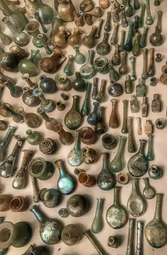 8. Roman glass jug with a smaller glass jug inside. The so-called joke jug, demonstrating the skill of a glassblower