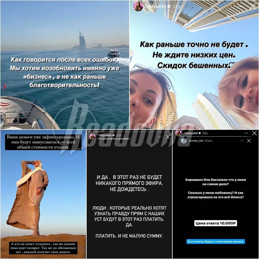 The blogger decided to get out of the debt hole in the same way and... resumed selling trips to Dubai. Yesterday, the girl shared the price list on her Instagram page, but with updated prices - extremely inflated, since now she is “selling, not organizing charity.” She offered the previously deceived travelers to buy a new tour and pay the difference, and if they did not want to be dealt with again, to expect the promised money.