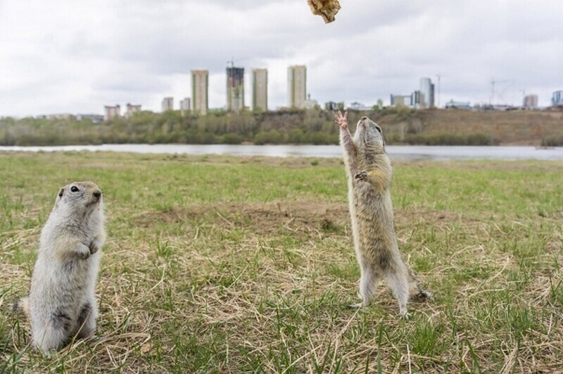 Susliks in the center of Krasnoyarsk