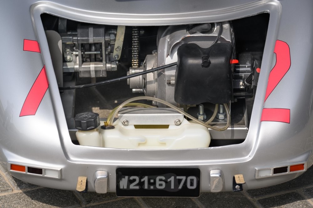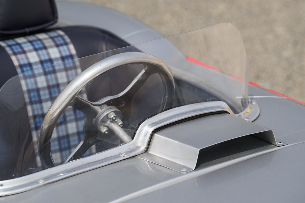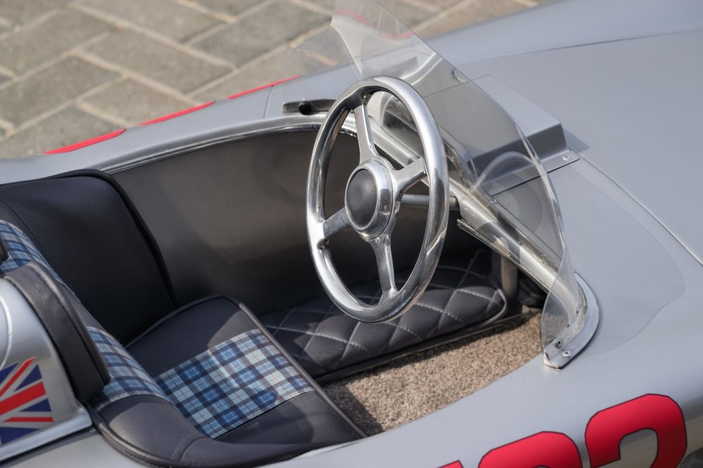 The auctioneers do not specify the origin of the car, but from the description it can be assumed that it was produced by Junior Dreamcars from the Netherlands. In its specification, the replica of the famous 1950s sports car is 1860 millimeters long and is based on a steel chassis with plastic panels. The “salon” is finished with a combination of leather and fabric.