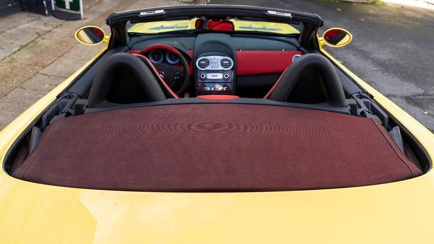 It is alleged that the eye-catching shade for the body of this supercar was used at the separate request of its buyer - silver was considered the standard color for the SLR McLaren. The yellow color is combined with a dark red folding fabric top and the same shade of leather in the interior trim, where seats on a carbon frame are installed. In addition, the car's brake calipers are painted red.