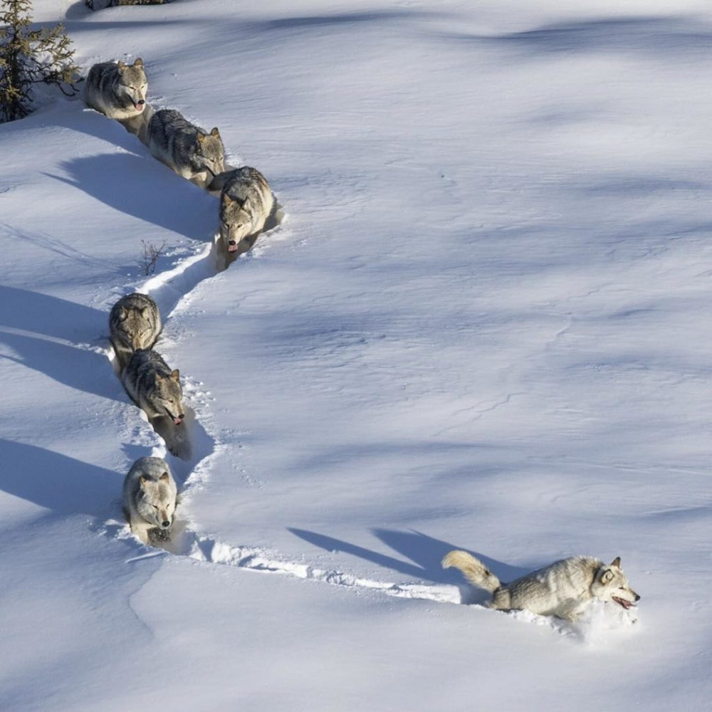 Well, those who have problems with physics solve the problem collectively! For example, wolves. The line is headed by an individual full of strength. Other members of the pack follow him exactly in his wake. Predators follow each other so clearly that it is often unclear how many wolves are in the group. The animals do this not for conspiracy, but to save energy. It is easier to follow a well-trodden path than to carve out your own. When a leader is exhausted, someone who has already had time to rest takes his place. And so on in a circle until the flock reaches from point A to point B.