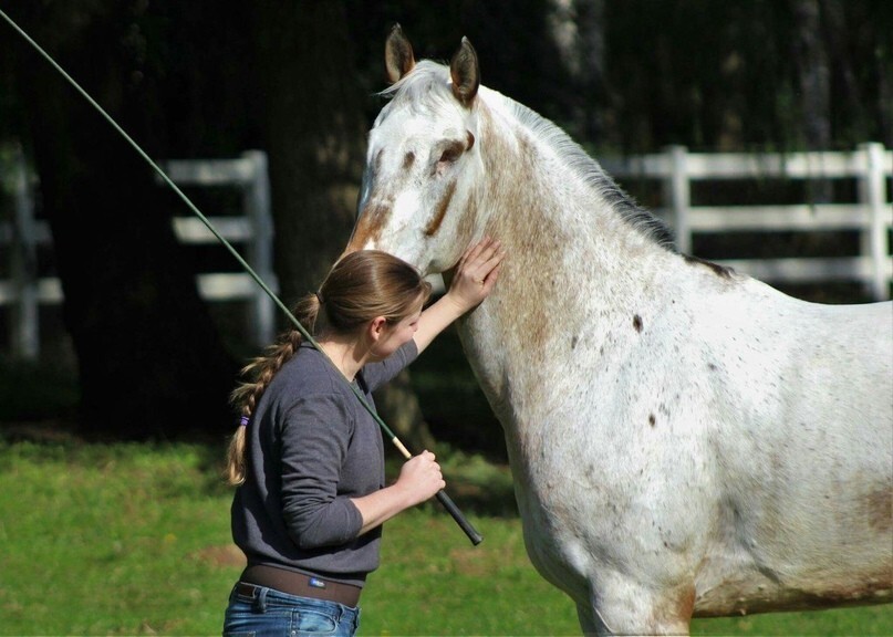 Even such preliminary preparation did not help to completely relieve the animal from stress. After the intervention, the horse was very scared. So Morgan started with short walks around the barn, gradually increasing the time. Then I moved on to traveling around the territory.