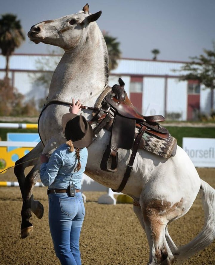 Years later, he can do absolutely everything that is available to ordinary sighted horses - walk under the saddle, perform jumps, participate in exhibitions