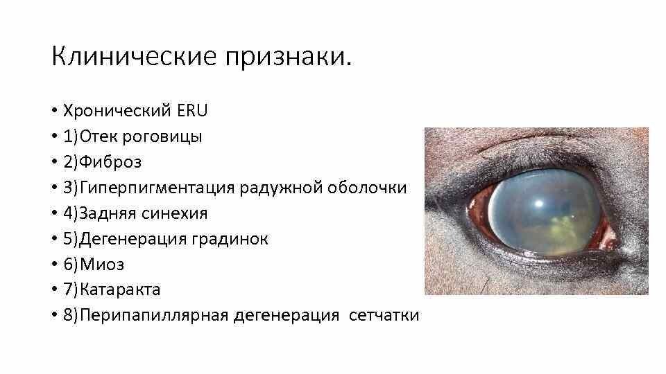 The disease is an inflammation of the uveal tract - the iris, ciliary body and choroid of the eyeball and is characterized by alternating active phases and remission. Plus, the horse was diagnosed with cataracts and glaucoma.