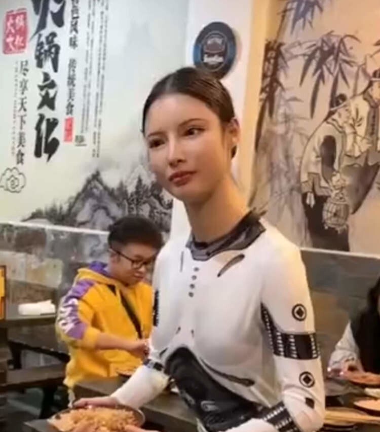As the world faces the threat that artificially intelligent robots will put people out of work, footage of an android greeting diners at a restaurant in Chongqing has emerged online. However, the waitress is more realistic than she seems at first glance.