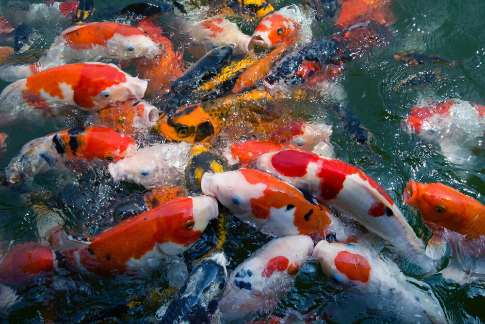 Koi carp: a symbol of the samurai that can be fed from a pacifier (5 photos)