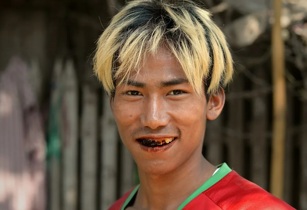 True, if you become too addicted to chewing betel, your teeth and gums will turn red. It looks, to put it mildly, repulsive. There is an opinion that betel is slightly addictive and stimulates the activity of consciousness.