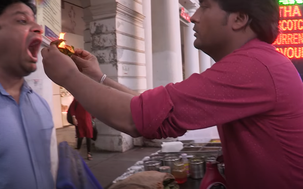 India is full of street food stalls, we have to compete somehow. And there was a street snack that shocks everyone, even passers-by. This is the paan you have to eat while it's burning! Moreover, the cook literally shoves it into your mouth before you have time to get scared and turn away.