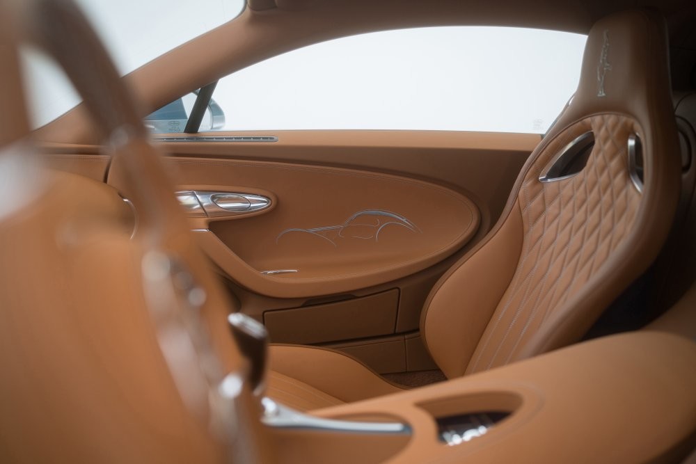 The headrests depict Rembrandt Bugatti's "Dancing Elephant" - Ettore's brother - whose image has already been used in the design of a number of special models, including one of the "legendary" versions of the Veyron Grand Sport Vitesse roadster and the modern W16 Mistral.
