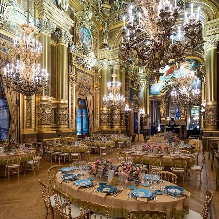 The ceremony took place at the Chateau de Villette, and the dinner took place at the Grand Opera. In addition, the guests were entertained by the band Maroon 5. The newlyweds' first wedding night took place at the Palace of Versailles.