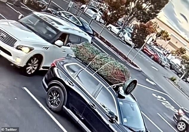 The theft occurred last Friday in the parking lot of a shopping center in San Mateo, a crime-ridden area of California. The attacker stole a $250 Christmas tree from the roof of a car in a matter of seconds.