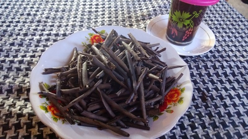 The prepared soil is carefully beaten with a stick to a uniform, flat layer approximately the thickness of a sheet of cardboard. Then the leaf is cut into equal strips, rolled into tubes that look like cinnamon, and baked in pots or smoked until tender. Depending on the purpose, cooking time can vary from 30 minutes to one and a half hours.