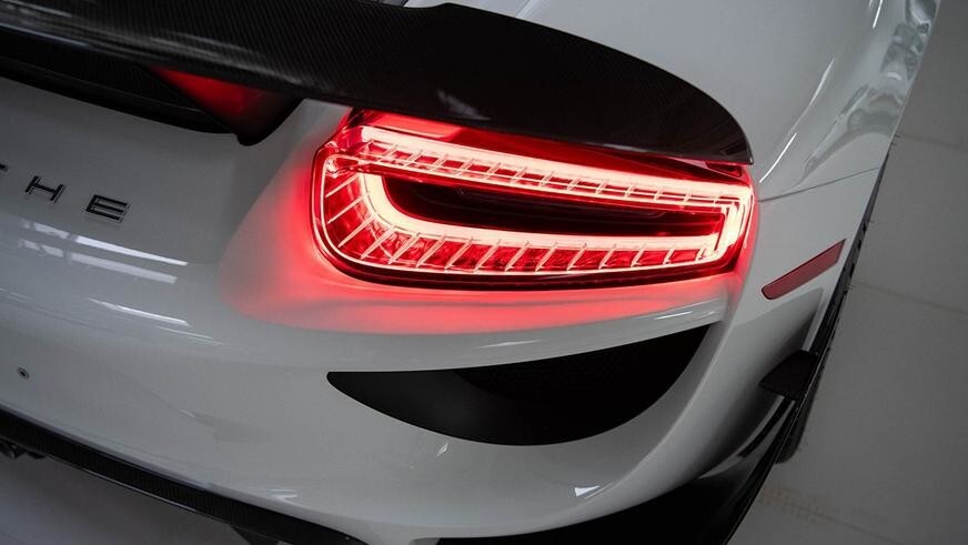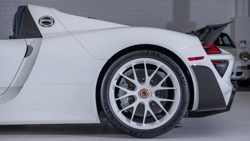 The Porsche 918 Spyder is also equipped with the optional Weissach package, which included, for example, magnesium wheels (they were also painted white) and a rear wing, a front axle lifting system for passing speed bumps and a number of smaller improvements.