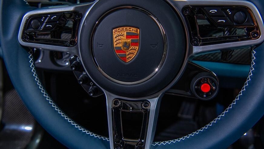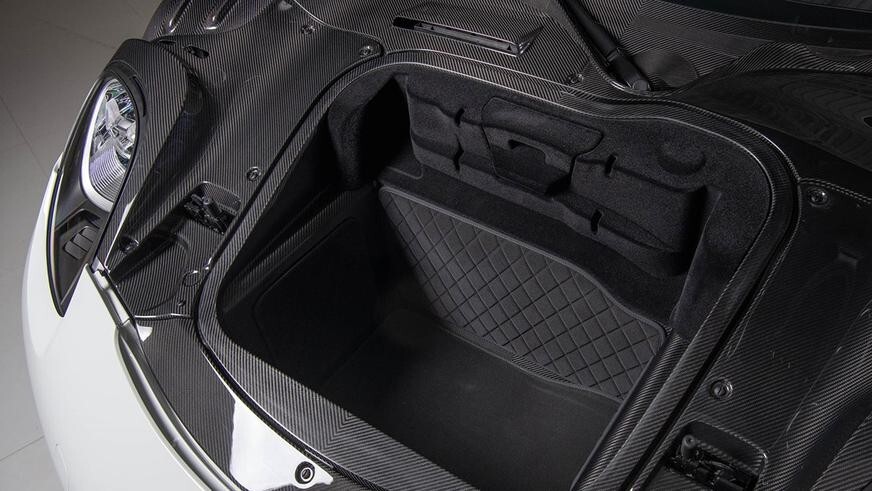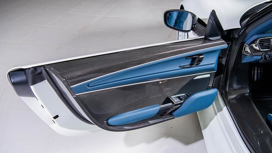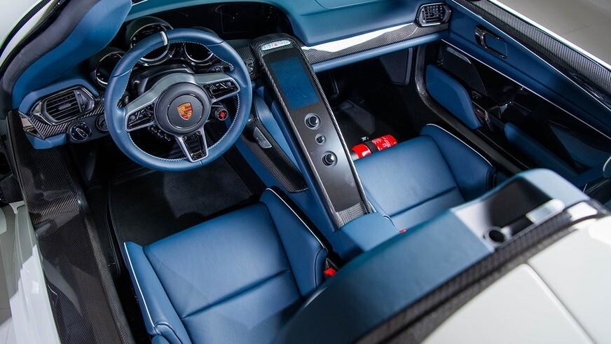 New 918 Spyder super hybrids cost at least 845 thousand dollars in the USA. This particular copy cost the owner about 200 thousand more, and half of the premium was spent on design solutions. The body of the spider was painted in an original shade of white, and for the interior, Porsche Exclusive Manufaktur developed a yacht-style upholstery using dark blue leather, carbon inserts and white accents. The design of the set of luggage bags included with the supercar follows a similar style.