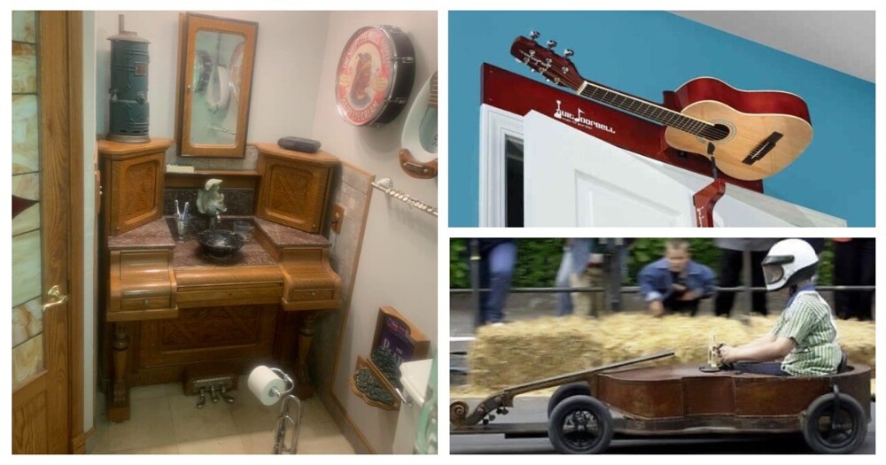 Musical instruments are meant to create beautiful melodies, right? But it also happens that they break or become unnecessary. Should good things go to waste? Why not give such things a second life? From the trombone as a toilet paper holder to the bass guitar as a race car...