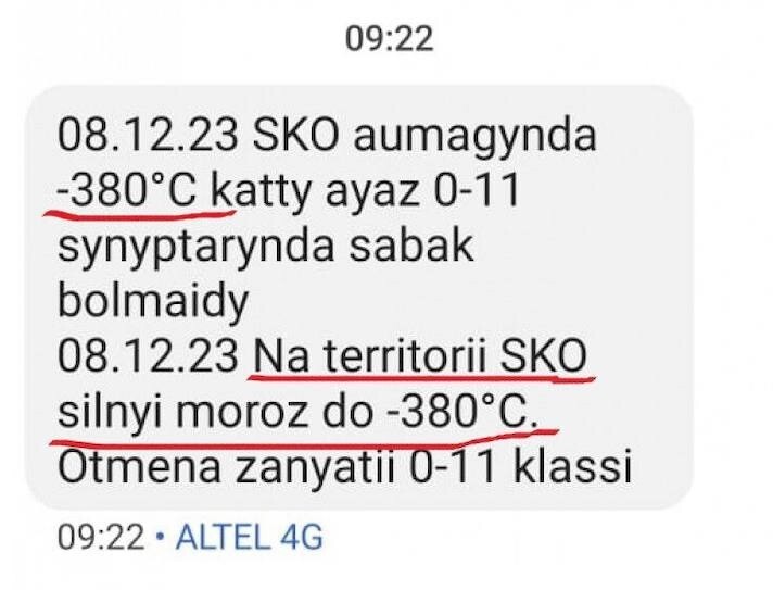 Can you imagine how surprised the residents of northern Kazakhstan were when they received a newsletter from the local Ministry of Emergency Situations warning about the impending frost. It's not every day you see something like this. December 8 promised to be very cold.