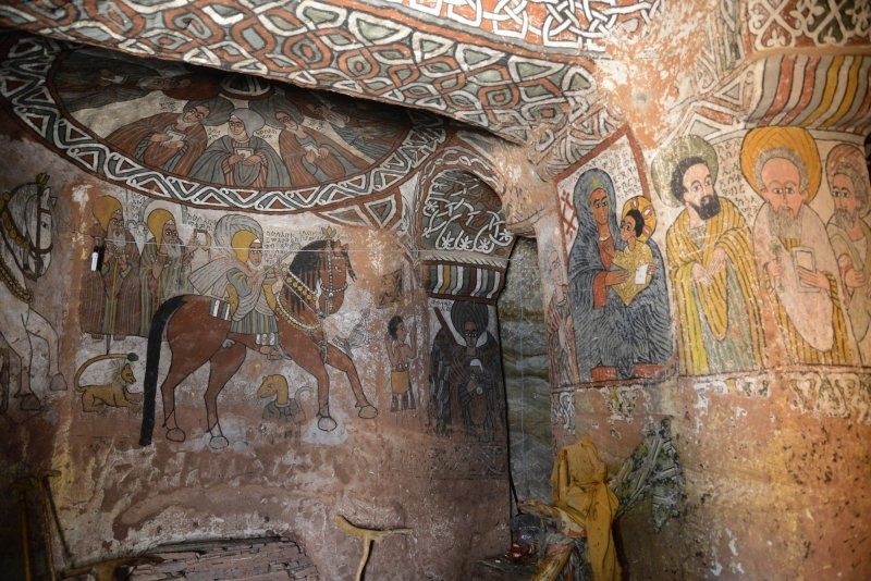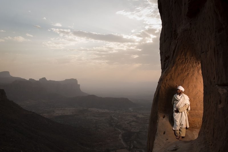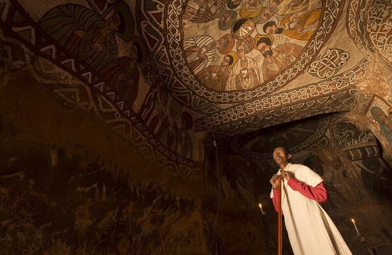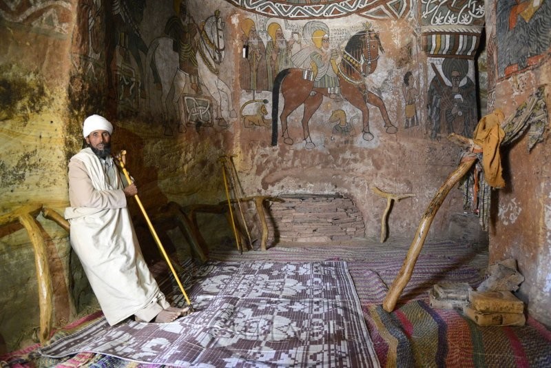 Abuna Yemata Guh is a place of holiness and tranquility. Tourists say that after the climb, you feel the adrenaline going off scale, and when the pulse slows down and your eyes get used to the twilight, you get a magical feeling that the angels and saints on the frescoes come to life, slowly emerging from the darkness.